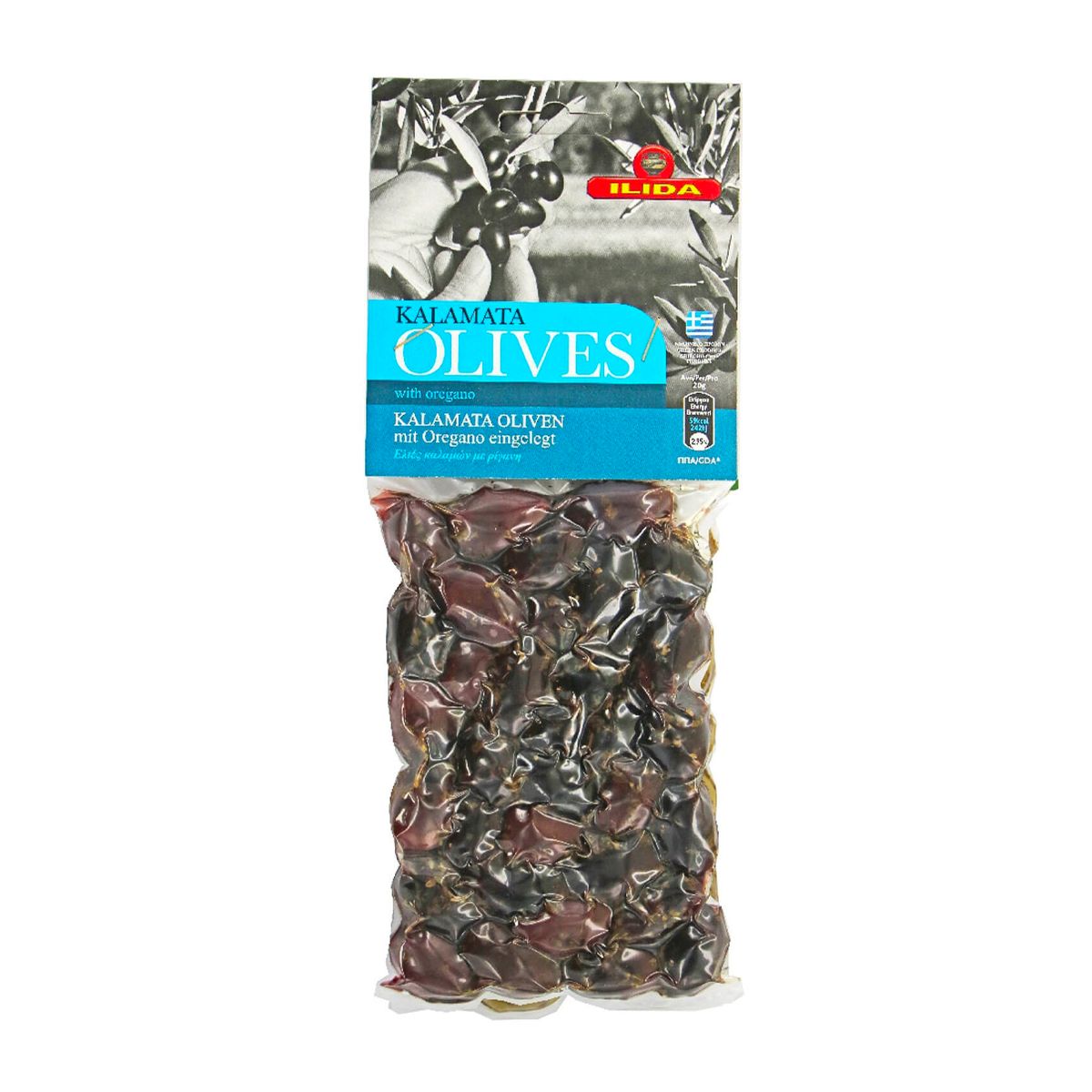Ingrédients: Olives noires  Kalamata 94%, huile dʼolive, vinaigre, origan 0,6%, sel.