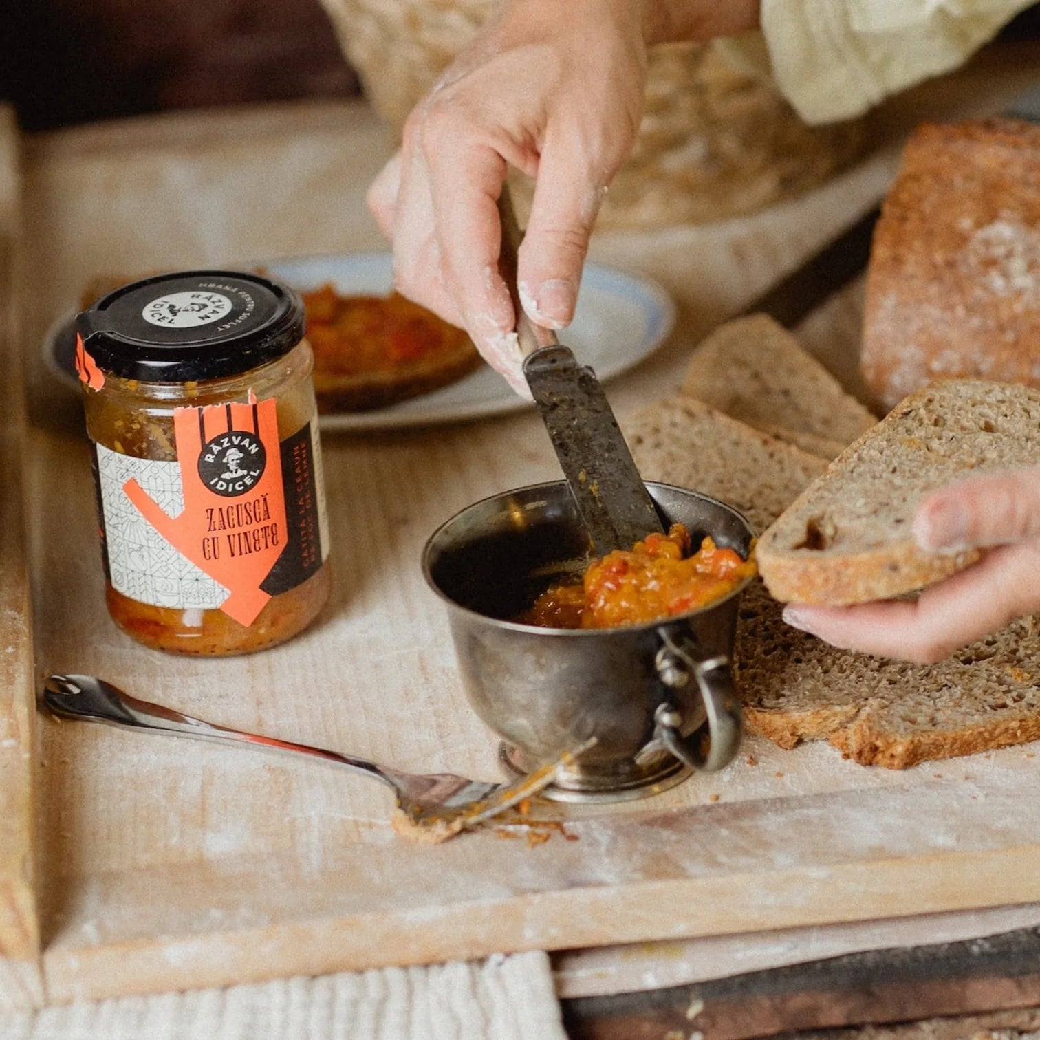 La Zacuscă d’Aubergines Răzvan Idicel vous ramène aux saveurs des plats faits maison par grand-mère, avec des aubergines grillées au feu et des poivrons rôtis, mijotés avec soin dans un chaudron sur feu de bois.