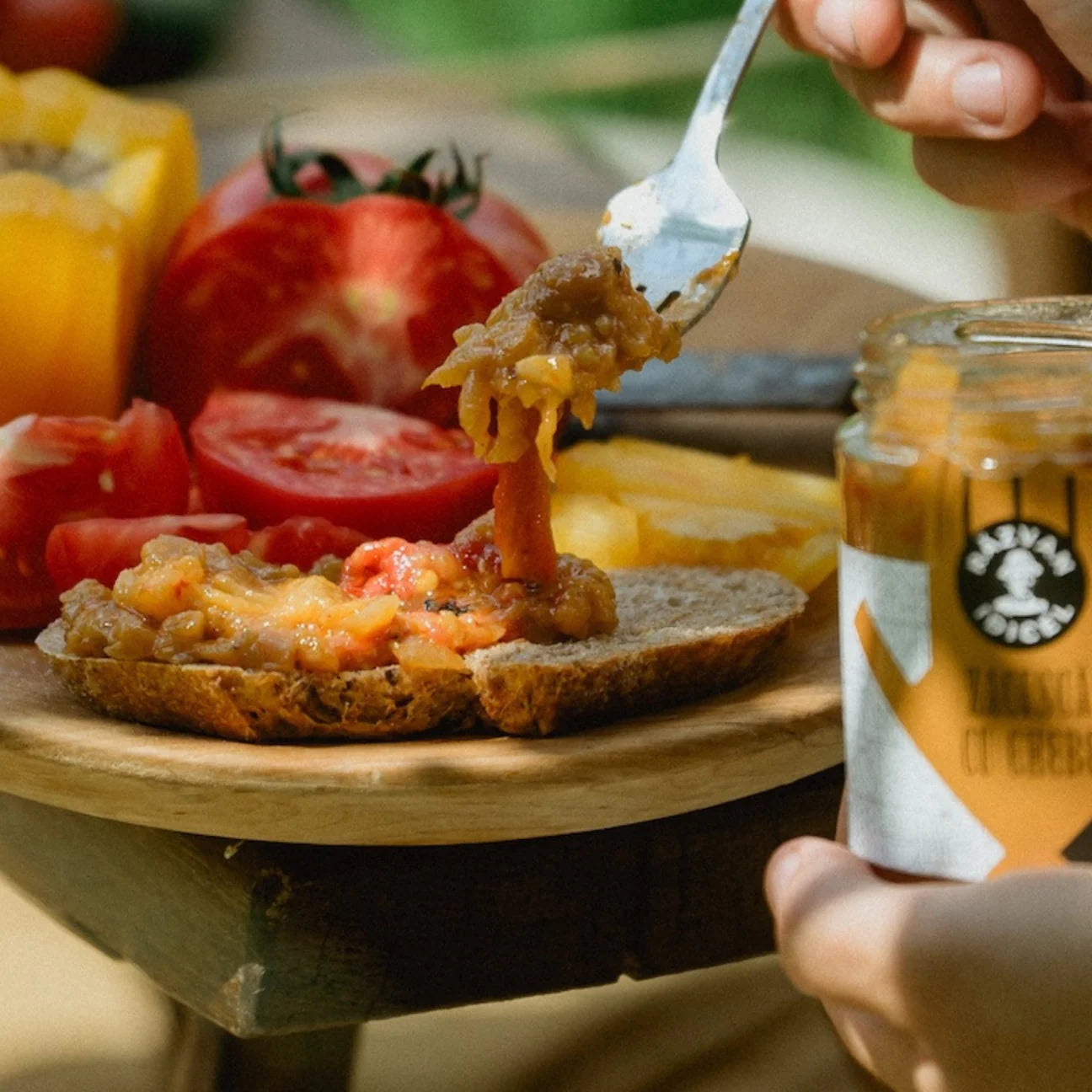 Zacuscă de Ghebe Răzvan Idicel associe les aubergines grillées et les champignons de forêt (ghebe) pour une expérience culinaire authentique, mijotée avec soin dans un chaudron sur feu de bois.